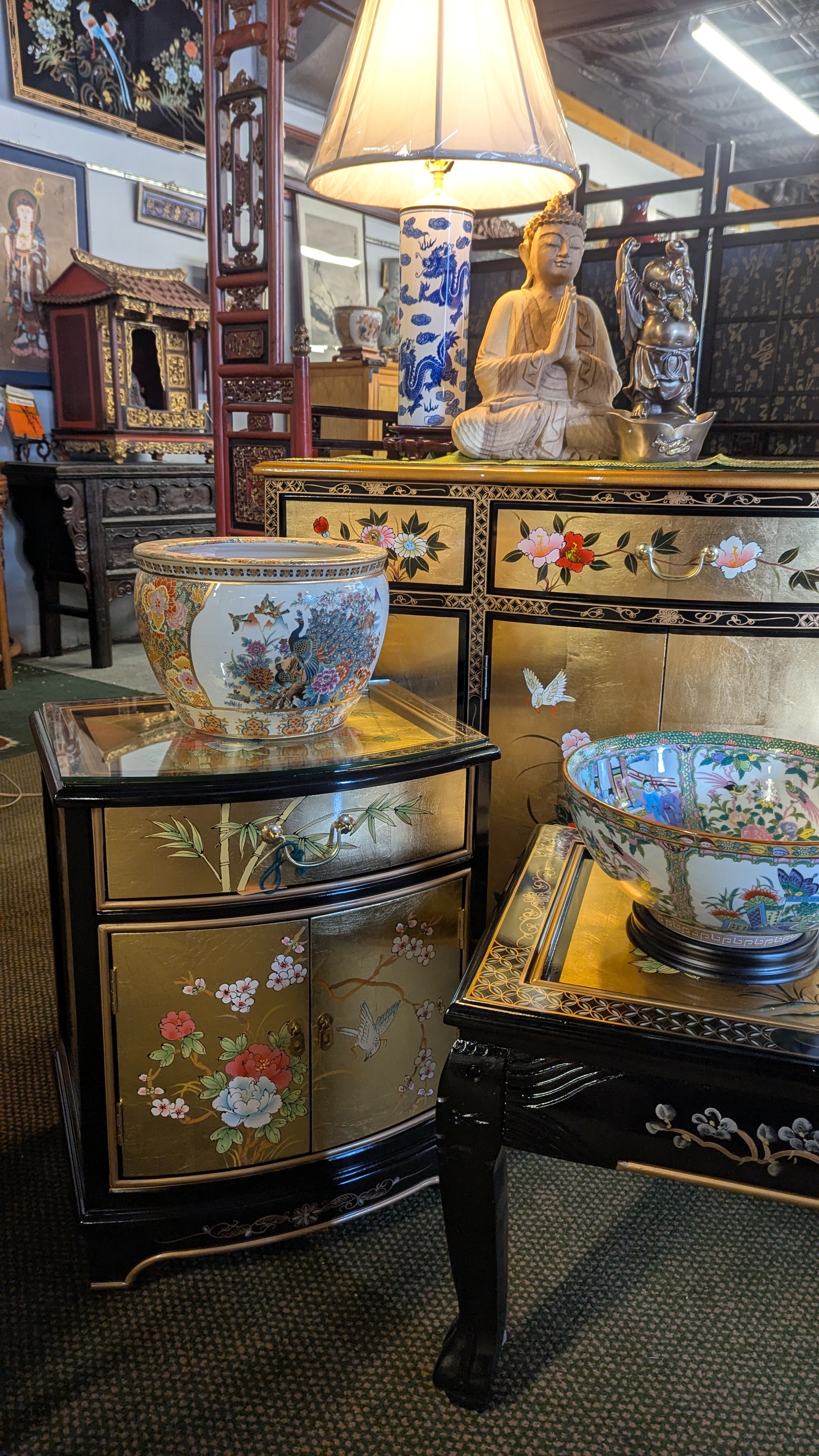 On Promotion This Week, Dec 12th - 18th, 2025:Purchase one End Table With Painted Bird and Flower Design In Gold On Sale at 17% Off, Take 50% off one Japanese Satsuma Peacock Planter! Save BIG Together. This week only and while supplies last! |