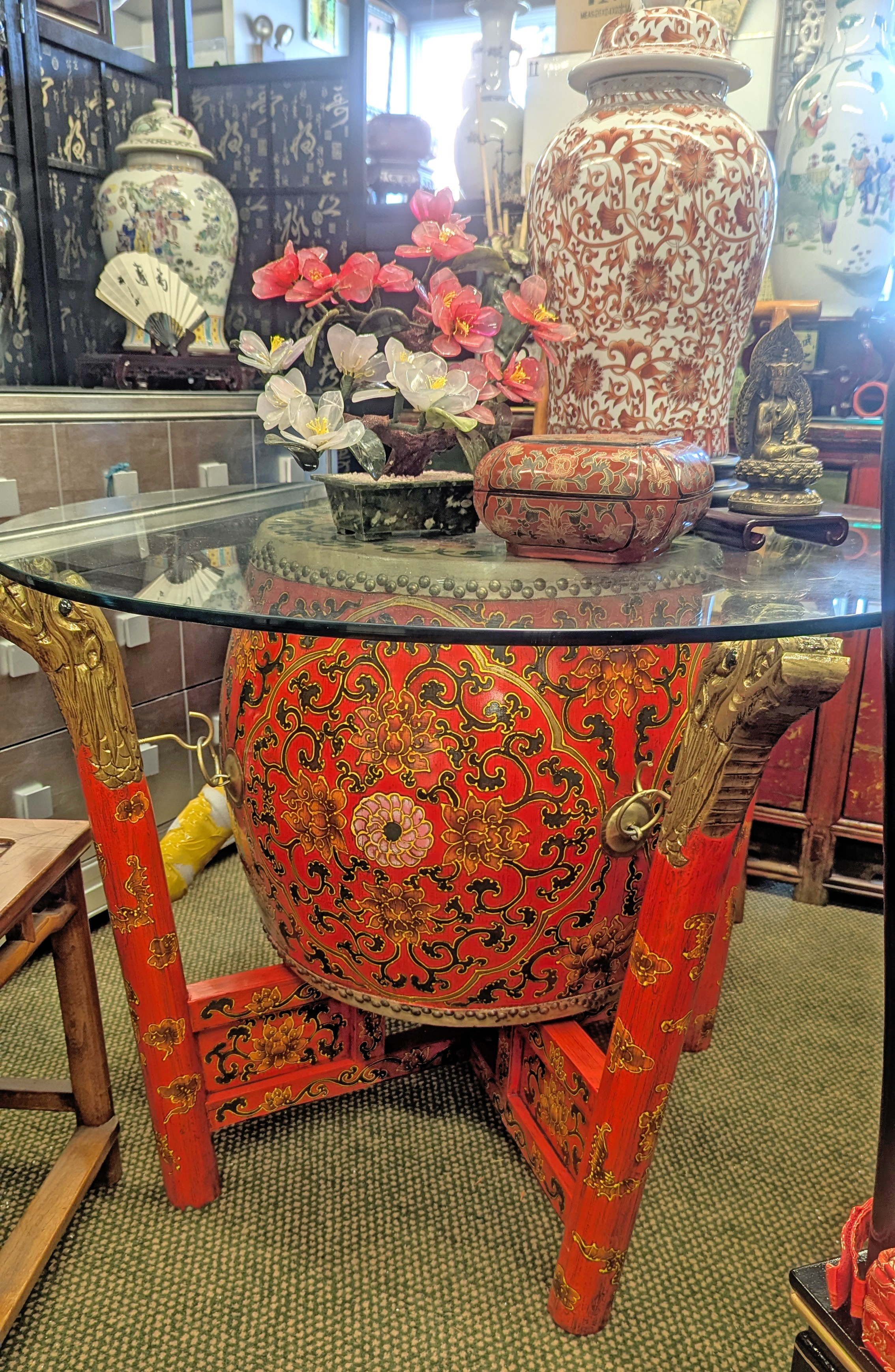 On Promotion This Week, Apr 10th - 16th, 2026:Purchase one Ceremonial Drum with Carved Stand for Accent Table Use On Sale at 14% Off, Take 50% Off a Matching Red & White Glazed Porcelain Temple Jar! Save $395 Together, This week only and while supplies last! |