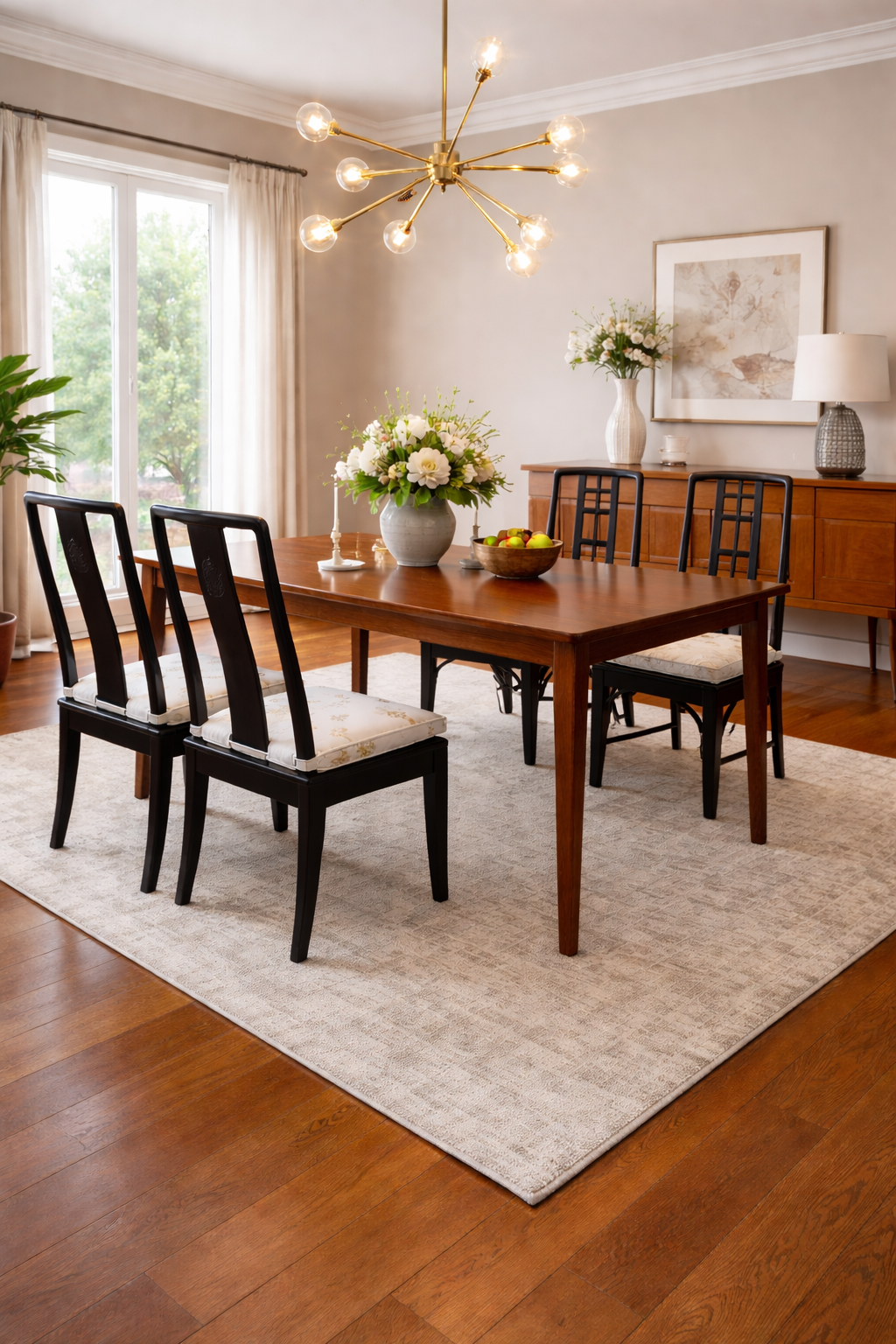 The same idea often brings warmth to dining rooms. A beautifully crafted wood table surrounded by chairs that vary subtly in upholstery or finish can feel far more inviting than a perfectly matched set. The slight differences create movement and personality while still maintaining harmony.