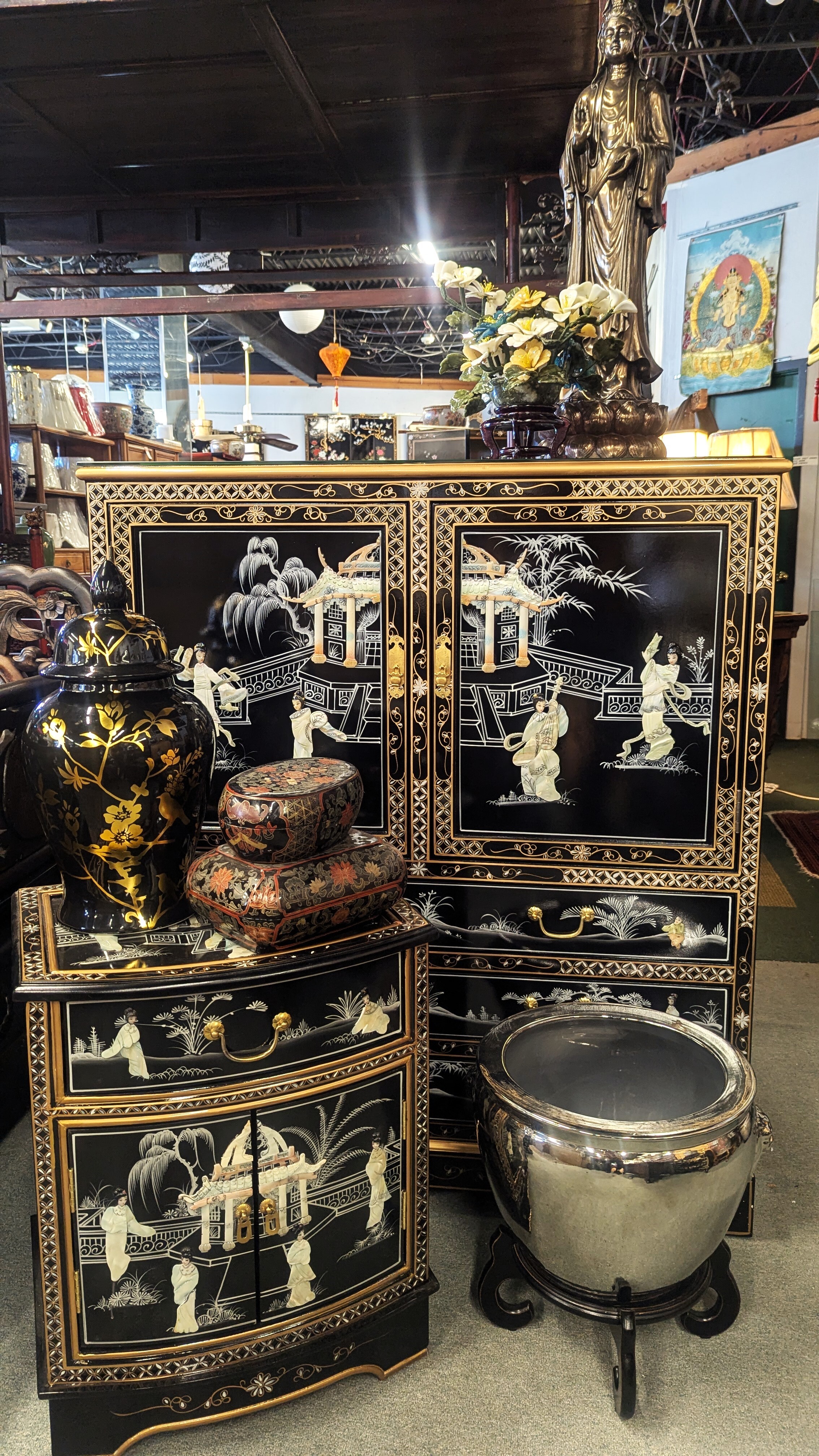 On Promotion This Week, Jan 16th - 22nd, 2026:Purchase one Oriental End Table in Black Lacquer On Sale at 16% Off, Take 50% off one Porcelain Cachepot Planter in Silver Glaze for Home and Garden! This week only and while supplies last! |