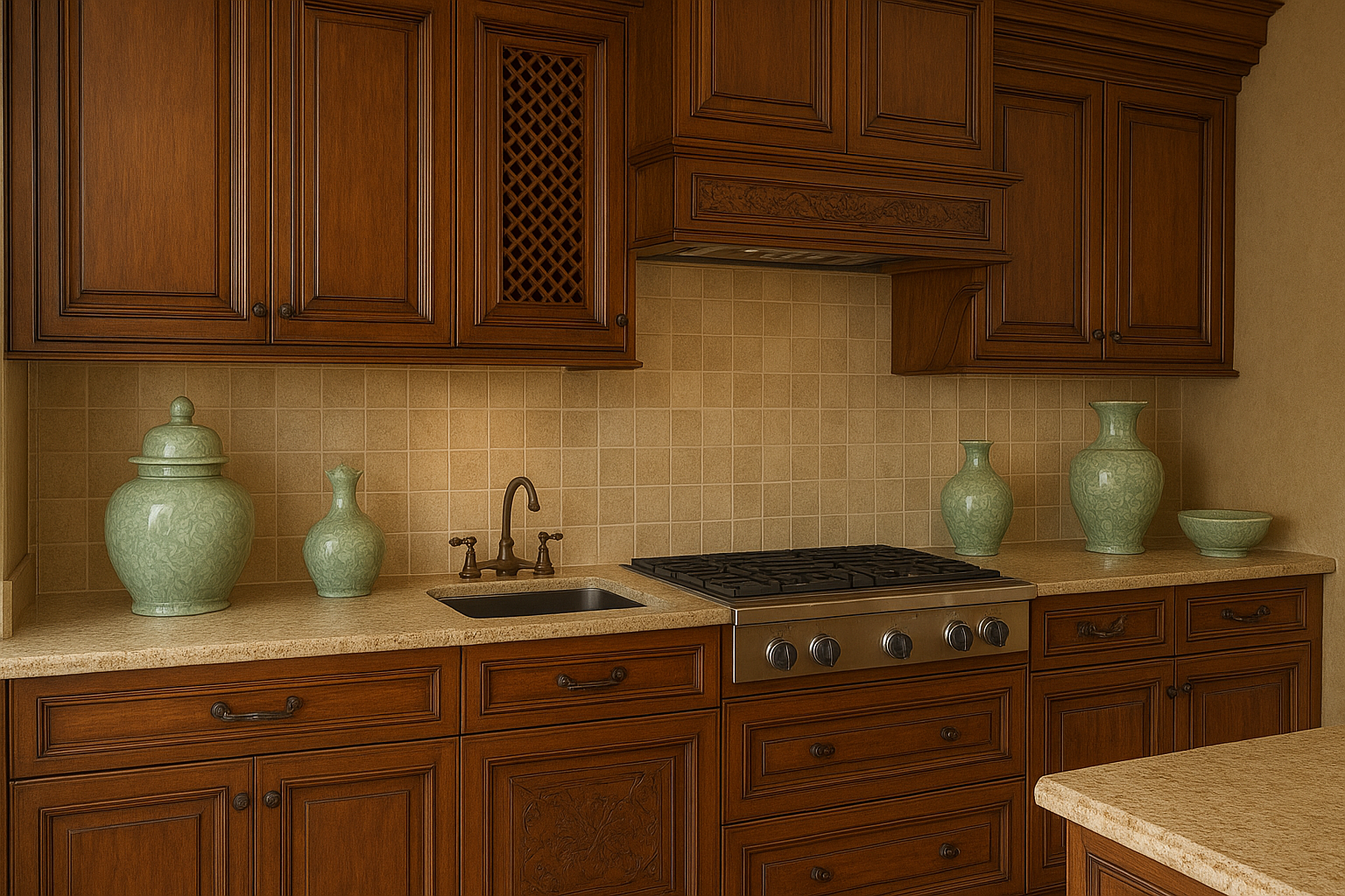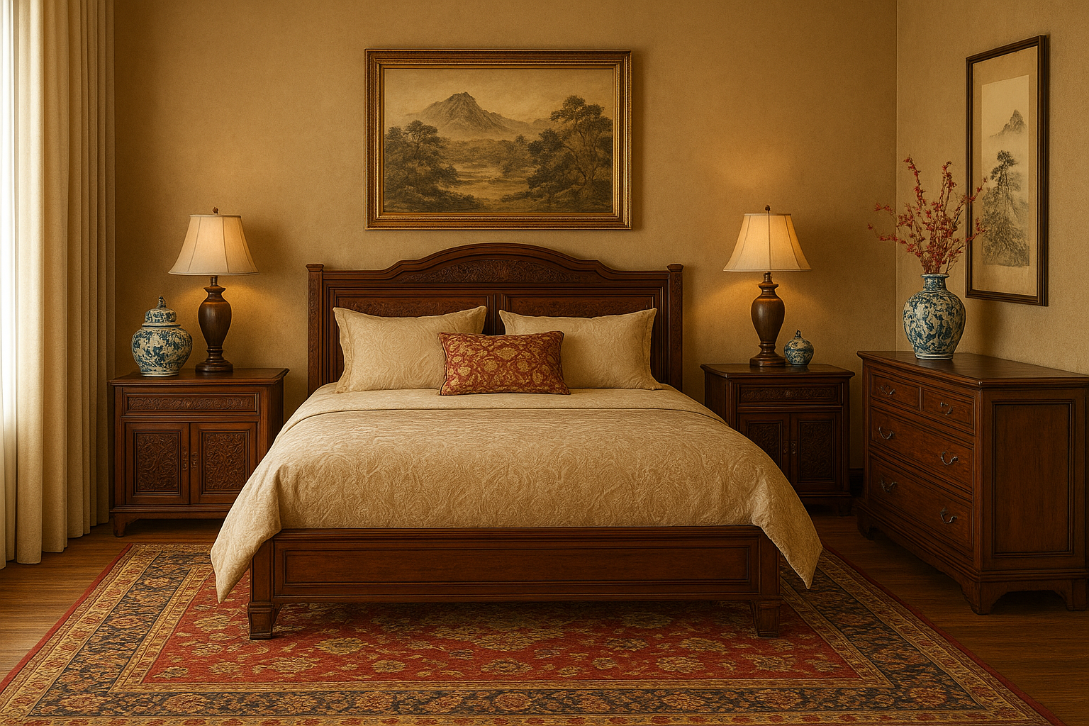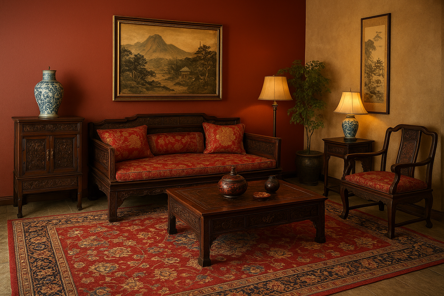 Blending Oriental artistry with traditional interiors creates a look that feels both timeless and full of character. The refined details, handcrafted woodwork, and porcelain accents bring a sense of history and sophistication, while the warm tones and balanced composition make any space feel inviting.